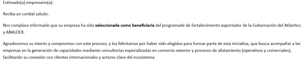 Estamos seleccionados para fortalecimiento exportador Gobernación del Atlántico y Analdex